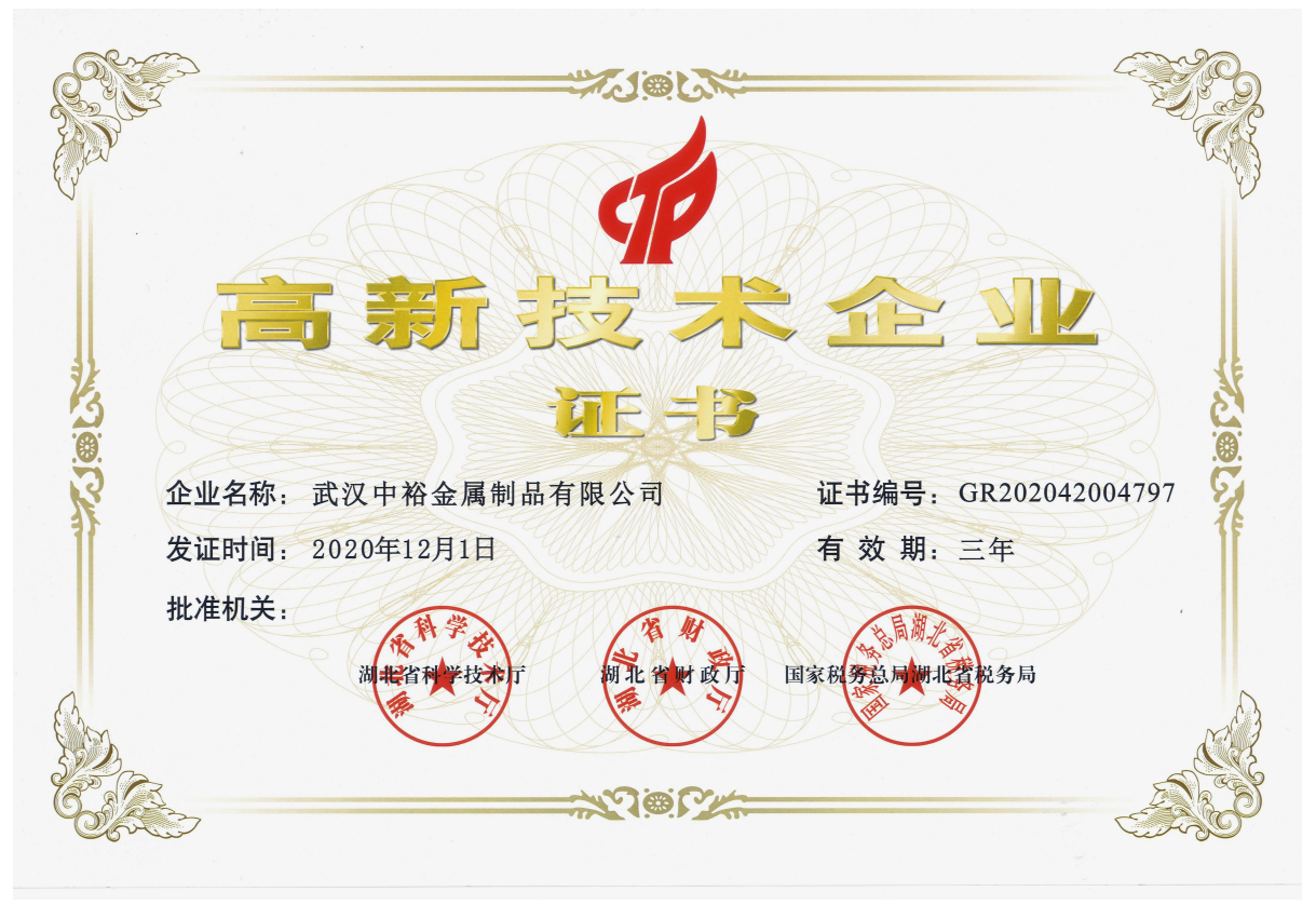武漢中裕金屬制品有限公司(以下簡(jiǎn)稱(chēng)公司)成立于1996年8月,民營(yíng)私人獨(dú)資企業(yè)。2010年8月投資1800余萬(wàn)元,在前川油崗工業(yè)園征地20畝,新建5000平方米的生產(chǎn)車(chē)間和1100平方米的辦公大樓,2011年8月全部峻工投入使用。